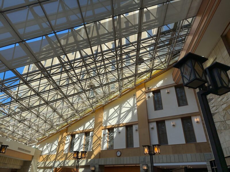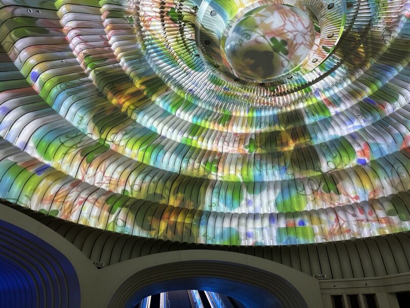 天井は有名な万華鏡作家夫妻が手掛けた世界最大級の万華鏡が投影されていて、すてきな音楽とともにマッピングを楽しむことができます。
