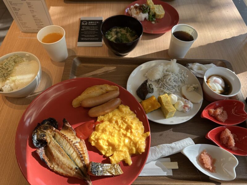 朝食も干物やしらす、明太子や焼き魚など、海の幸を中心にたらふくいただきました。