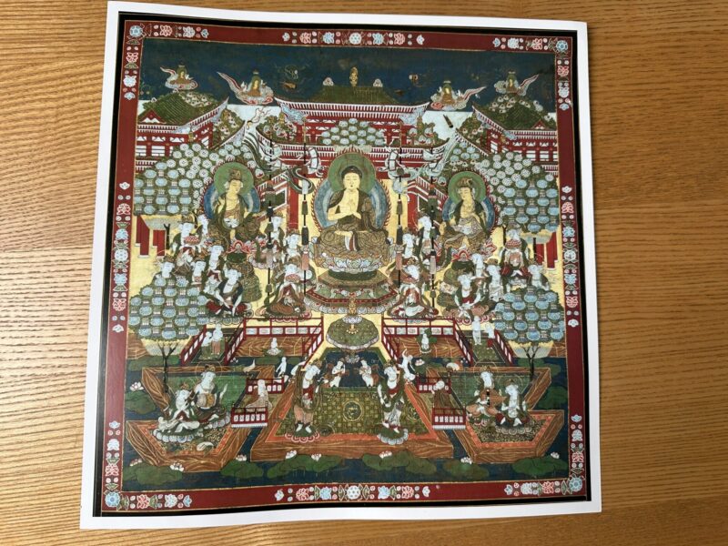 智光曼荼羅とは、智光さんが持っていた極楽浄土を現した絵図です。