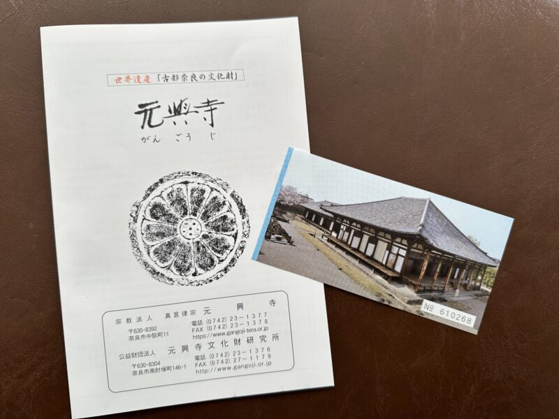 極楽堂の写真デザインのチケットと、お寺の歴史や年表が載っているパンフレットをいただきました。