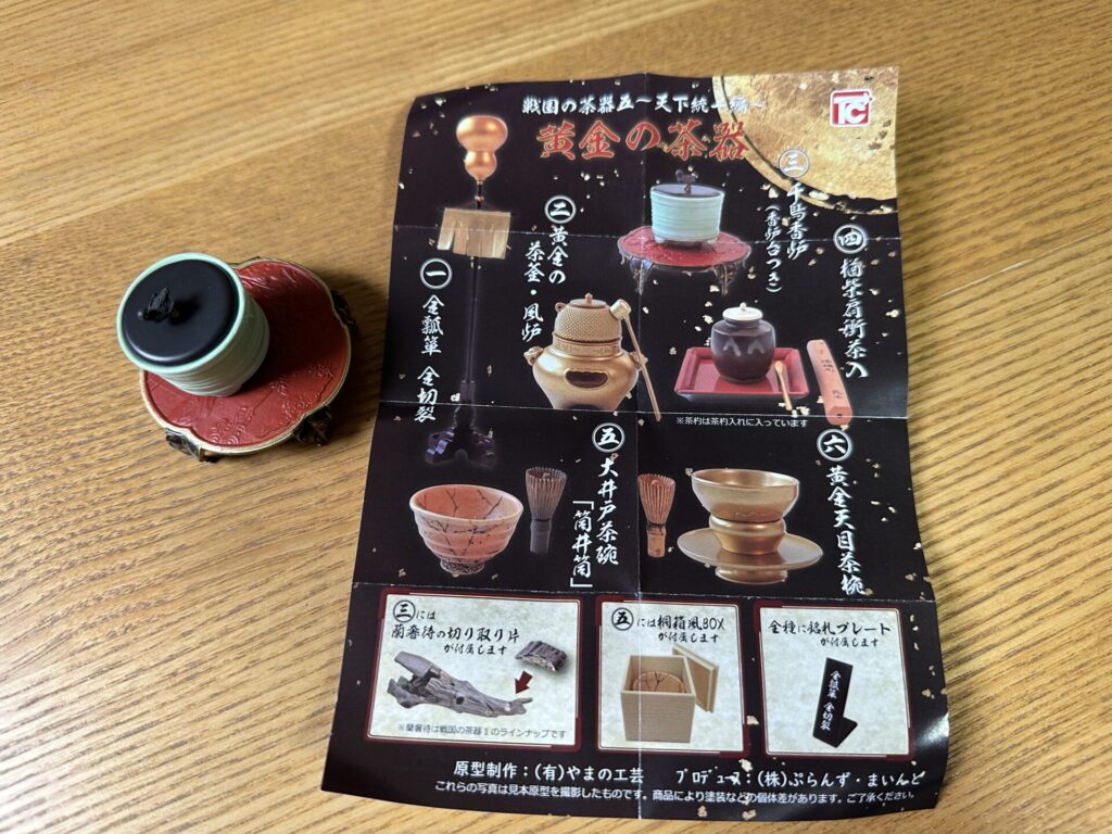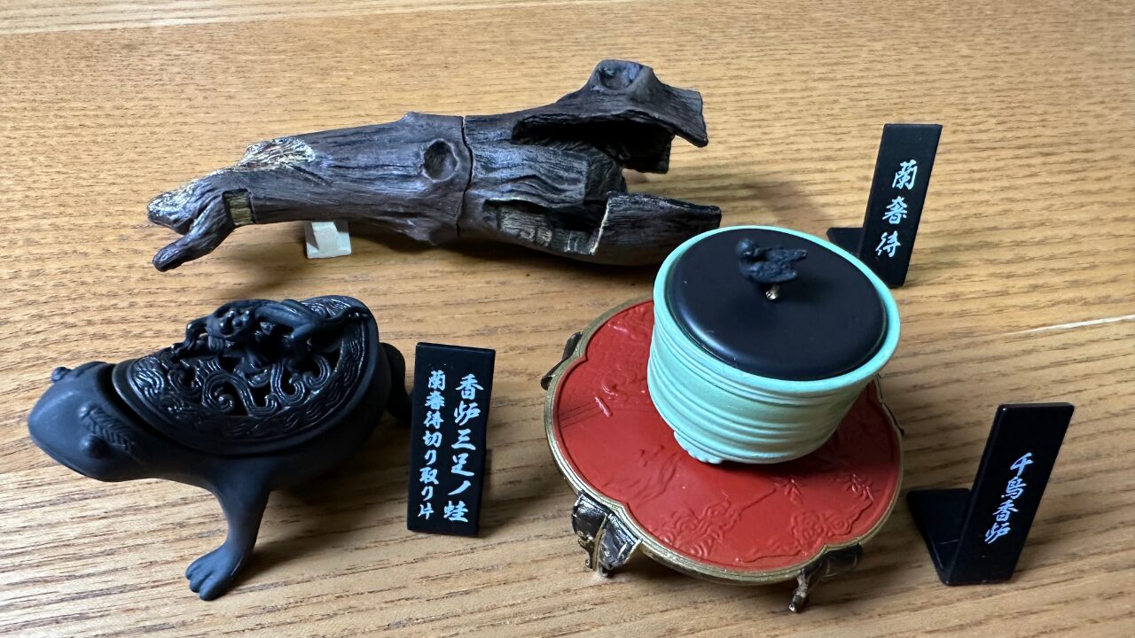 あちこちのECサイトを探しまわり、この茶器シリーズのカプセルトイにある蘭奢待本体ともう1種類の香炉も購入しました。