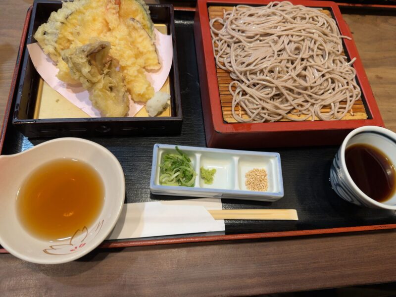 奈良公園の奥のほうに食事できそうなところがあるのかわからないので、駅前の商店街に戻ってお蕎麦をいただきました。