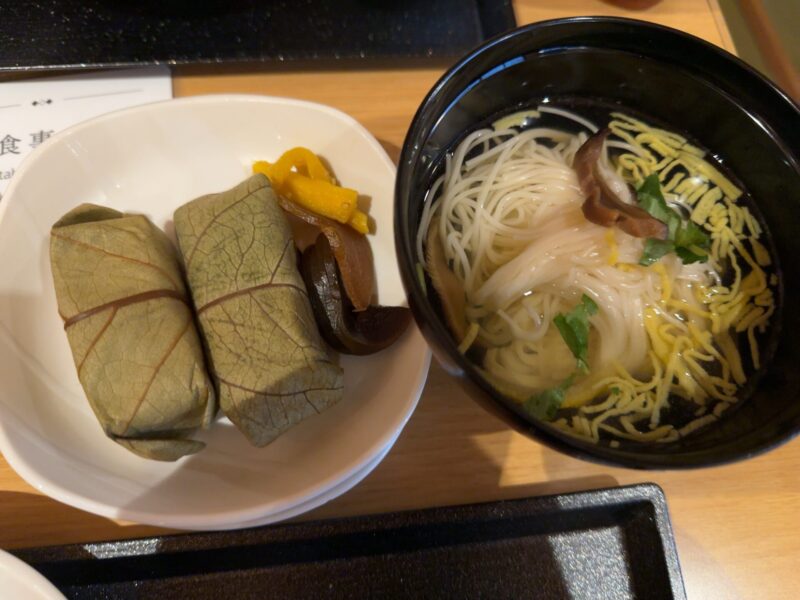 柿の葉ずし、茶粥、三輪そうめん、奈良漬、葛餅などお腹いっぱいいただきました。