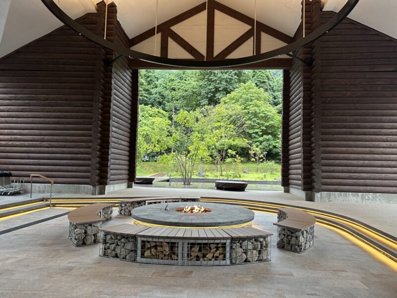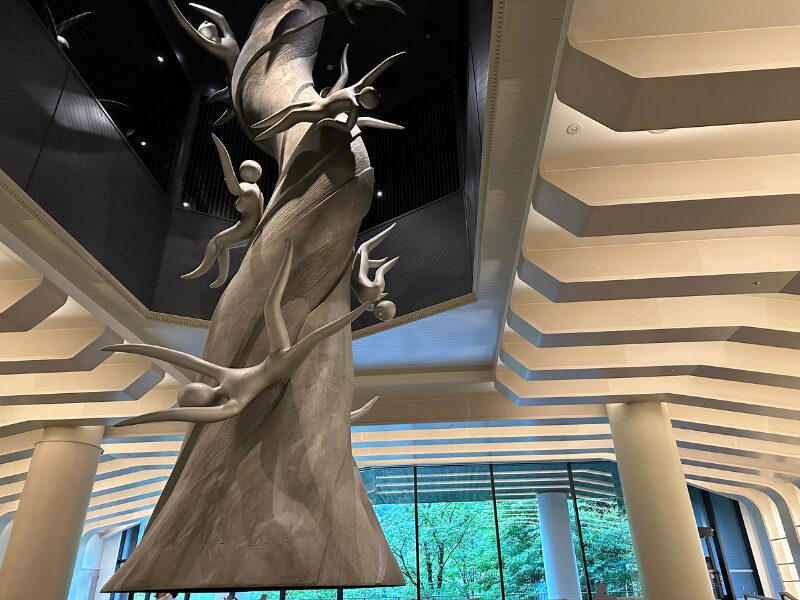 奥入瀬渓流ホテルといえばコレ、岡本太郎作の巨大暖炉「森の神話」があるロビー。