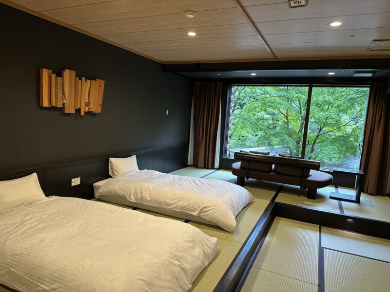 館内着は私の苦手な浴衣ではなく、作務衣だと聞いていたので、今回部屋着は家から持参せずにホテルのものを着用しました。