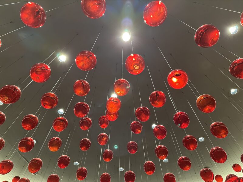 天井にりんごのビードロのようなものが飾ってあってとてもきれいです。