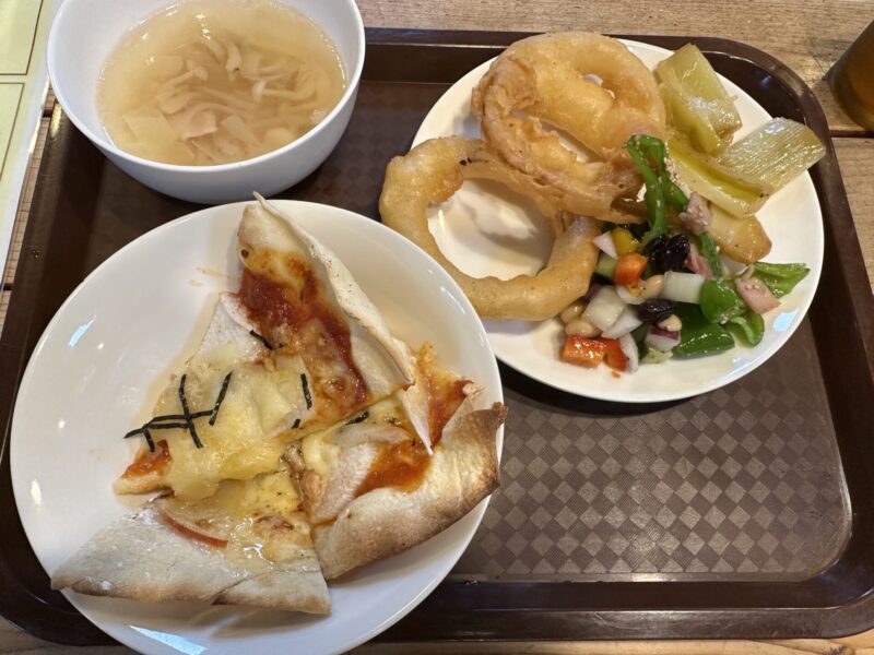 ネギやオニオンリング、ピーマンなど火の通ったお惣菜もたくさんあっておいしかったです。