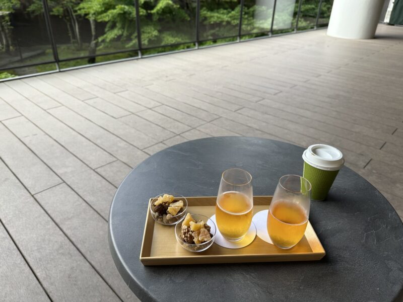 ウェルカムドリンクは、りんごジュースやシードル、りんごワインや日本酒などさまざまなドリンクを自由に選べます。