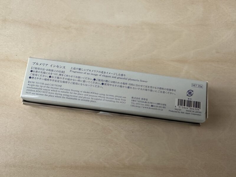 まったくおんなじではありませんが、同じメーカーがプルメリアの香りのお香を販売しているのを発見しました。