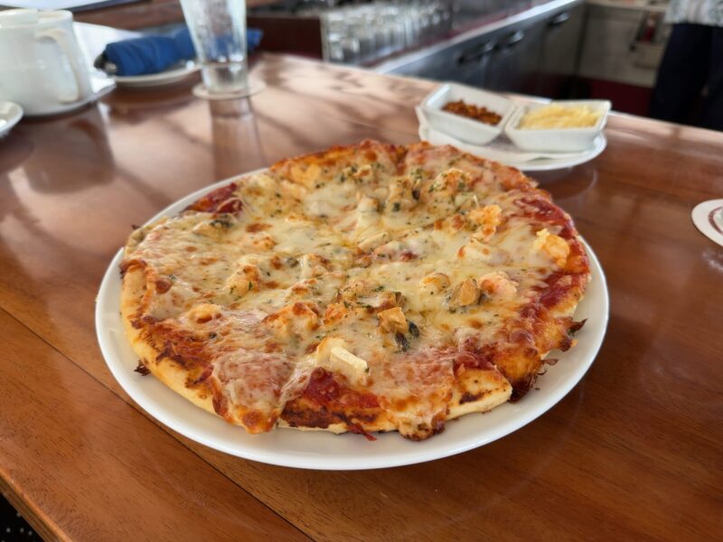 大好きなフィッシュアンドチップスとシェアできるピザも頼みました。