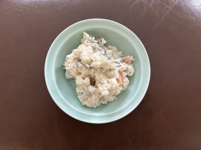 もっと簡単にローズマリーを食べられる方法はないか?とネットで検索したところ、ポテトサラダに生のローズマリーを入れたものを発見。
